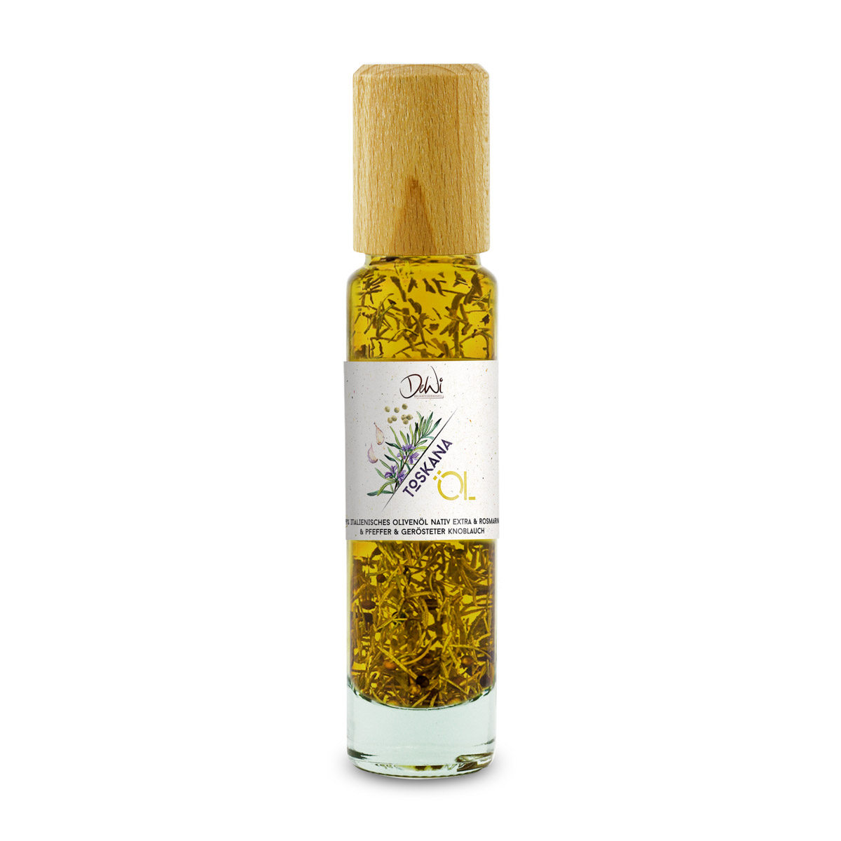 Toskana Öl mit Einlage | 100 ml | Flasche mit Holzverschluss | ohne Dekoration