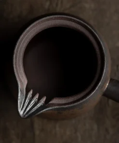 Eine Kyusu ist eine traditionelle japanische Teekanne mit Seitengriff, die überwiegend für die Zubereitung von grünem Tee verwendet wird. Die elegante Einhand-Teekanne fasst 200 ml und bietet eine besonders angenehme Handhabung beim Einschenken: Der Griff der kleinen Kanne ist innen hohl, wodurch er stets kühl bleibt und Verbrennungen verhindert. Auch das integrierte Sieb im Kyusu ist gut durchdacht – der Keramikfilter erleichtert das Ausgießen des Tees und gewährleistet einen gleichmäßigen Fluss ohne Tropfen.