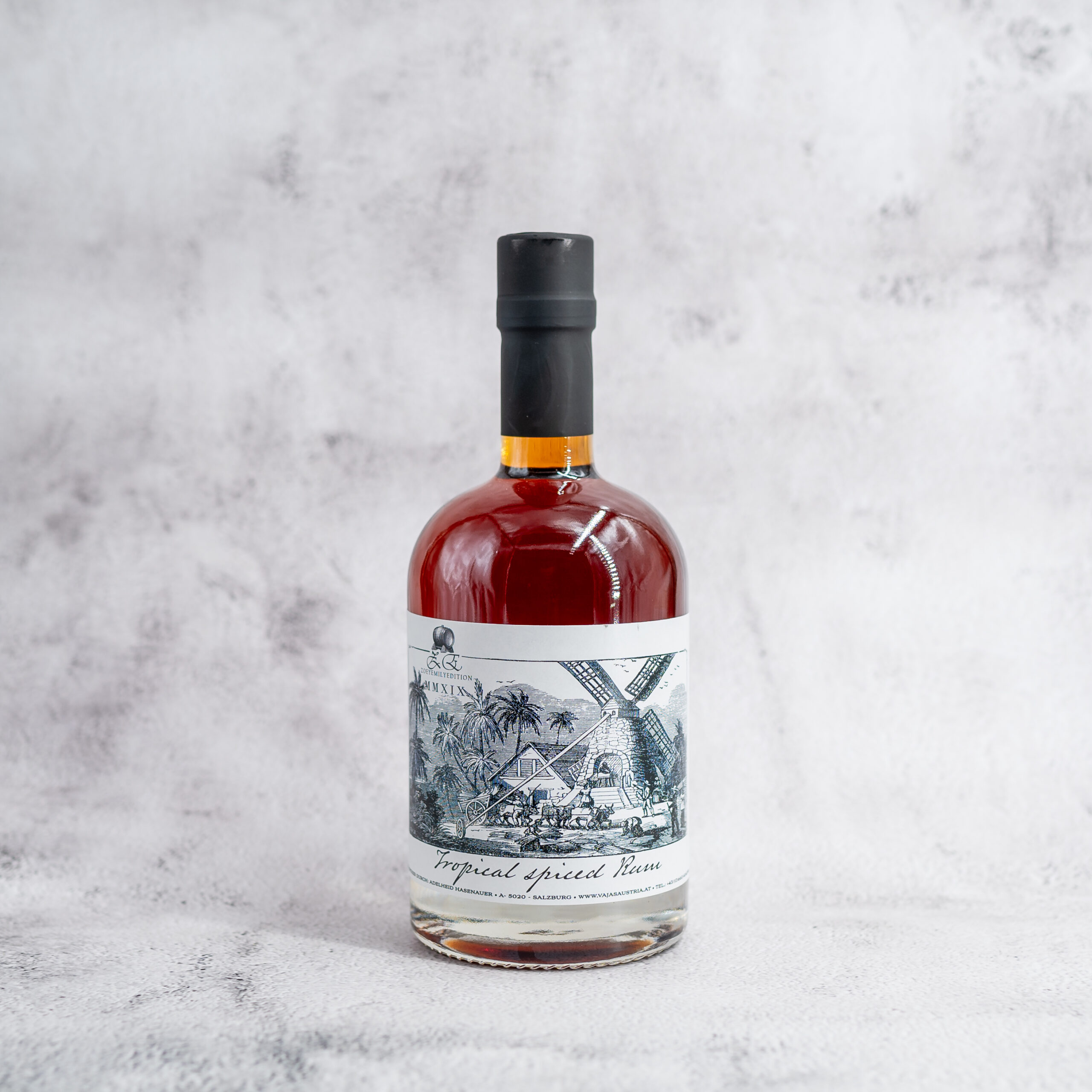 Unser Tropical Spiced Rum wird in einer stilvollen Flasche präsentiert, die nicht nur optisch ansprechend ist, sondern auch das Aroma und die Qualität des Rums schützt. Jede Flasche ist ein Unikat und ein echter Hingucker in Ihrem Spirituosenregal.