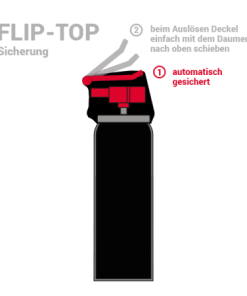 Das Pfefferspray ist mit einer hochwertigen Flip-Top Kappe ausgestattet, welche das unbeabsichtigte Auslösen des Sprays verhindert.