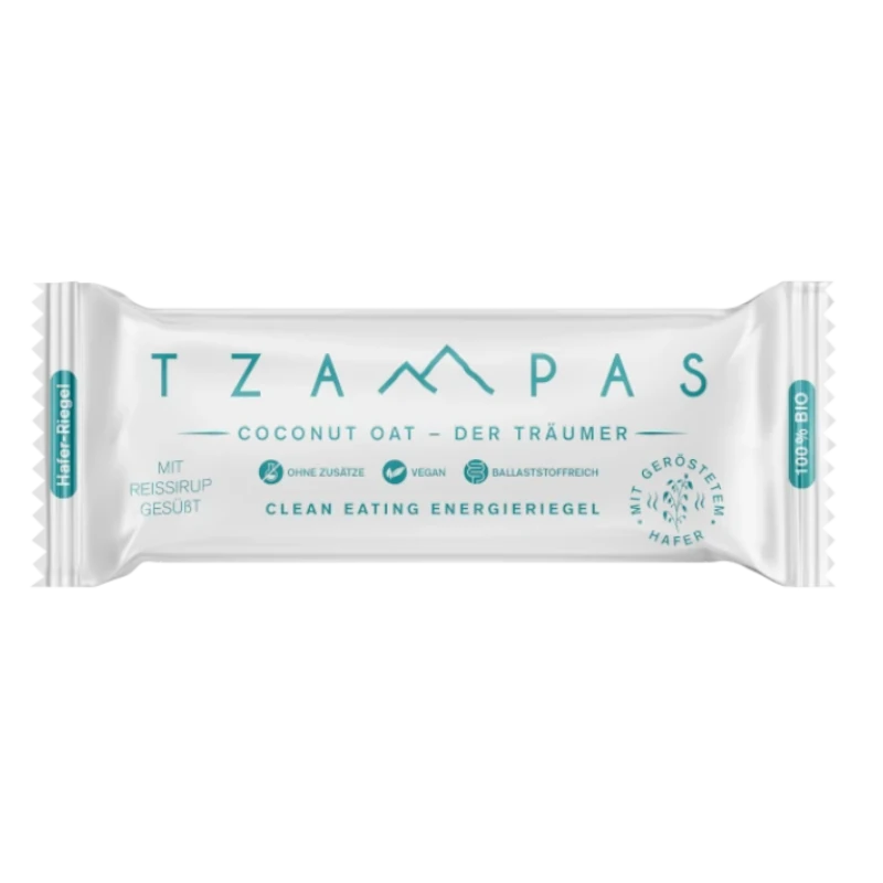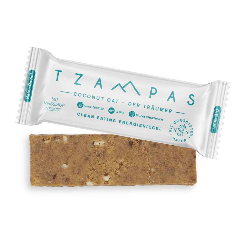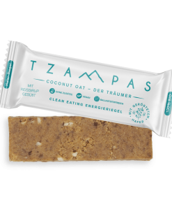 Dieser tolle Energieriegel liefert dir die Energie für einen langen Tag! Der Energieriegel Coconut Oat – Der Träumer ist der erste TZAMPAS Riegel aus geröstetem Hafermehl. Die besonders aromatische Mischung aus Kokos- und Mandelmus harmoniert hervorragend mit der Zartbitterschokolade, ohne dabei zu süß zu sein.