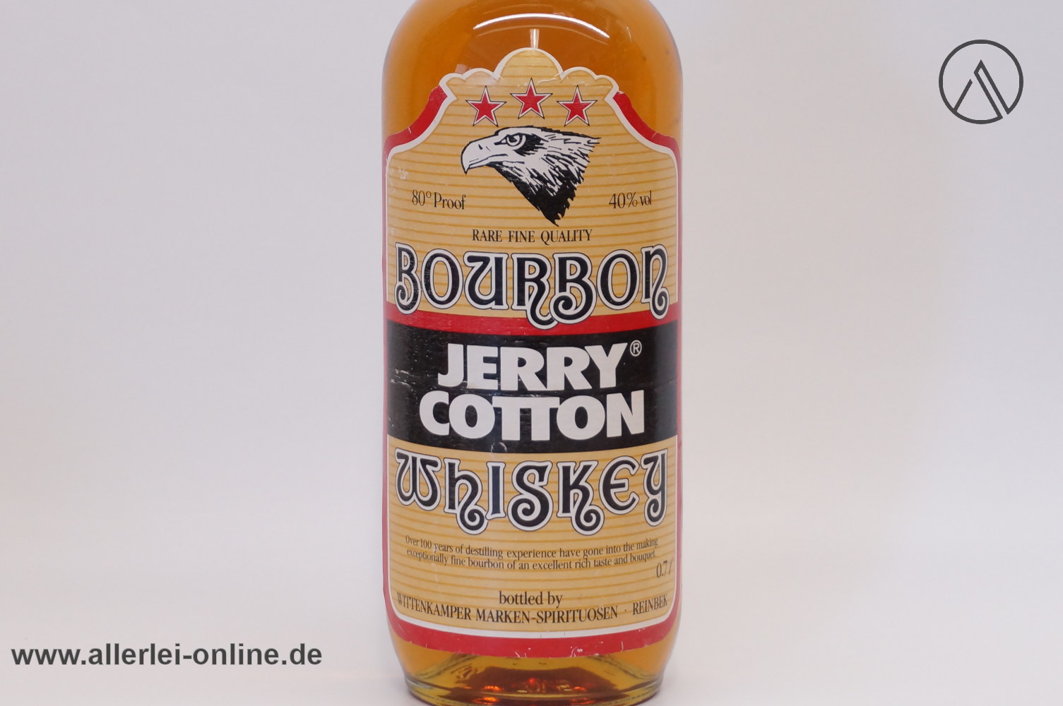 Lieferumfang: 1 Stück Vintage Bourbon Whiskey | JERRY COTTON | 40% vol.- 0,7l | Abfüllung für den BASTEI-Verlag durch Wittenkamper/Reinbeck ,wie abgebildet