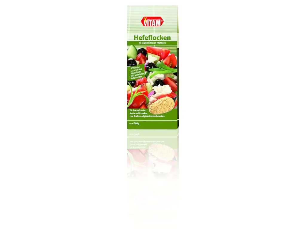 Vitam Hefeflocken sind reich an Vitamin B1, B2, B6 sowie den Vitaminen Pantothen- und Folsäure