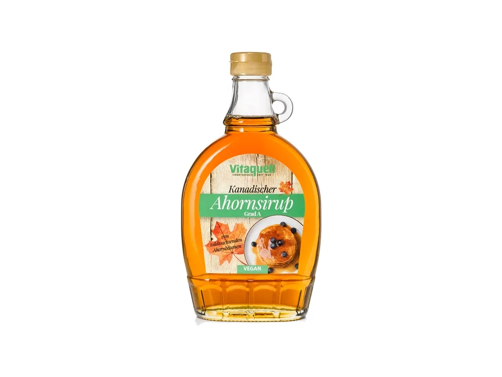 Ahornsirup wird aus dem Lebenssaft des Ahornbaumes gewonnen. Er wird lediglich eingedickt und enthält keine Zusätze.