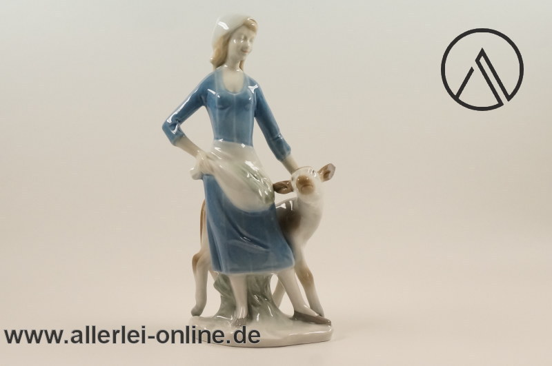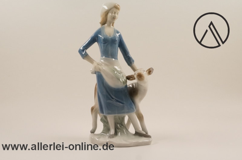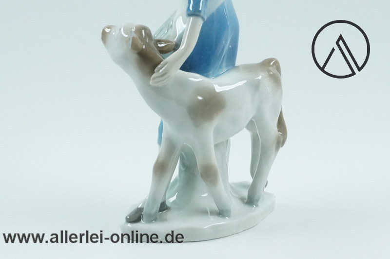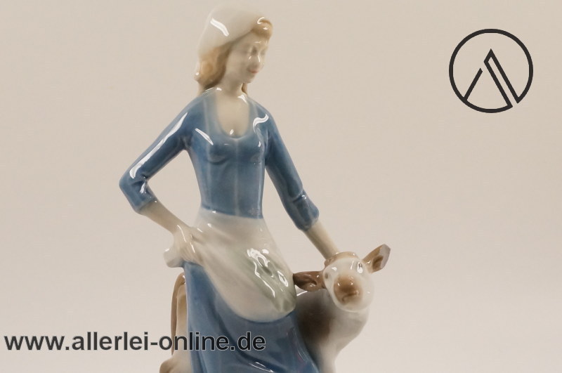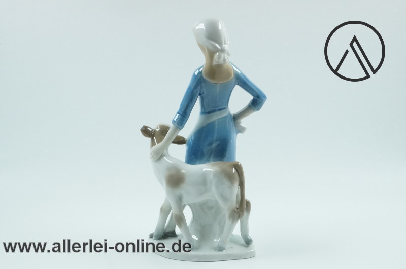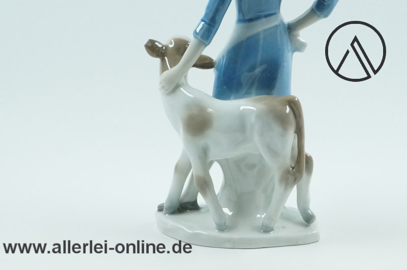 Wagner & Apel 1877 GDR Porzellan | Bäuerin mit Kalb | Lippelsdorf Thüringen Porzellanfigur