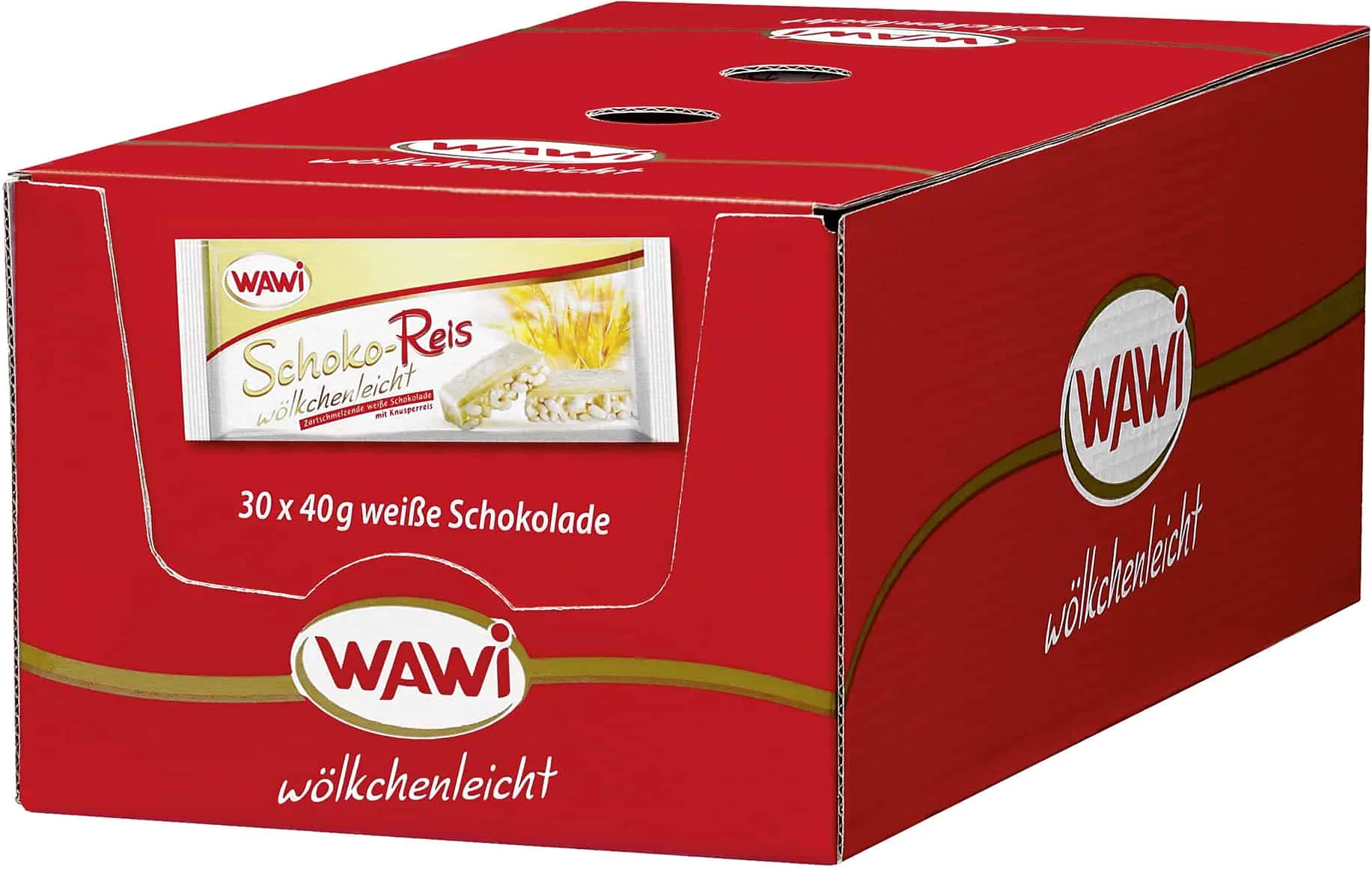 Wawi Schoko Reis Weiß ist eine köstliche Schokoladenmischung aus gepufftem Reis und Weizen-Reis-Extrudat, umhüllt von einer cremigen Schicht weißer Schokolade. Die Schokolade hat einen Kakaoanteil von mindestens 30%, was für einen intensiven und vollmundigen Geschmack sorgt.