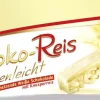 Zutaten: 83 % Weiße Schokolade (Zucker, Kakaobutter, VOLLMILCHPULVER, SÜSSMOLKENPULVER, Emulgator SOJALECITHINE), 15 % gepuffter Reis, 2 % Weizen-Reis- Extrudat (Reismehl, WEIZENVOLLKORNMEHL, WEIZENMEHL, ROGGENMEHL, Zucker, MAGERMILCHPULVER, Salz) Produkt kann Spuren von Schalenfrüchten enthalten.