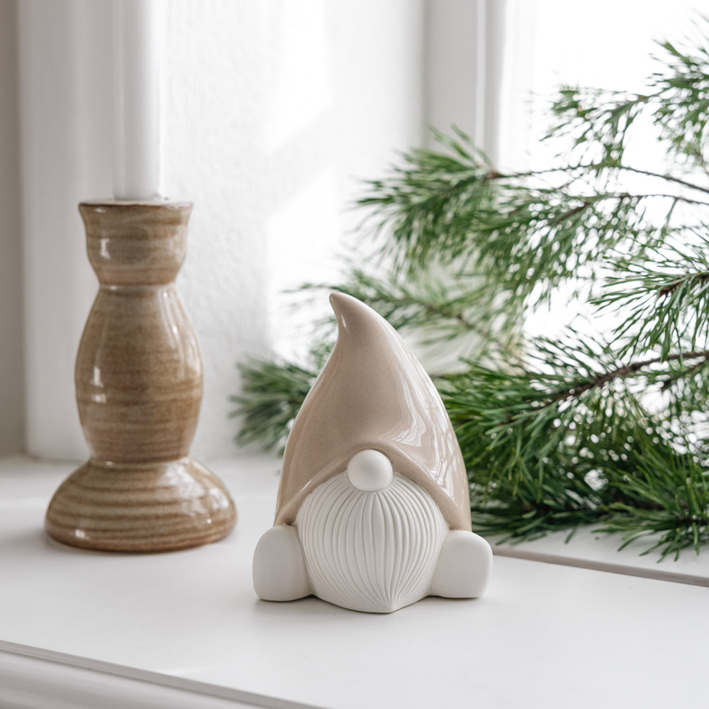 Wichtel mit Mütze | Harald | Weiß & Beige | Keramik (teilweise glasiert) | 0 x 10 x 13 cm | Marke Storefactory | ohne Dekoration
